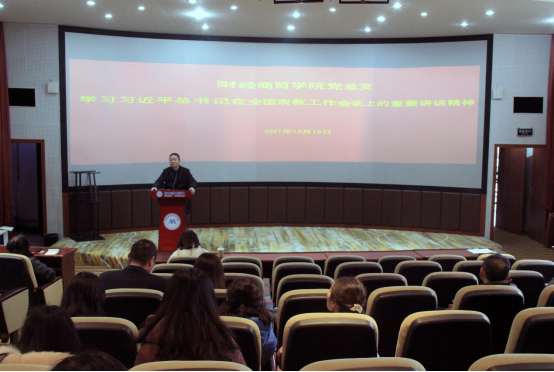 12月15日下午,财经商贸学院党总支召开专题会议,传达学习习近平总书记在全国宗教工作会议上的重要讲话精神,学院党总支书记苏自强主持会议,全体教职工参加学习。