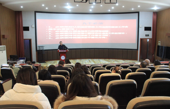 会议要求,全体教职工要认真学习领会习近平总书记重要讲话精神,特别是要深刻理解“九个必须”的核心要义、精神实质,全面贯彻党的宗教工作基本方针和政策,坚持教育与宗教相分离原则,牢牢把握宗教活动“三个不得”要求,不断增强“四个意识”、坚定“四个自信”、做到“两个维护”。(图文/李富)