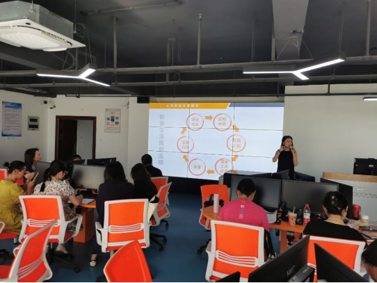 培训中,佘洋燕从树立生涯规划意识、自我认知、探索工作世界和决策等四大模块进行了详细讲解,其中自我认知部分从职业兴趣、职业性格、职业能力和职业价值观四个方面,通过一系列生动有趣的活动体验来帮助参培人员更好地理解相关理论、掌握探索方法。辅导员们积极参与互动,课堂气氛活跃。
