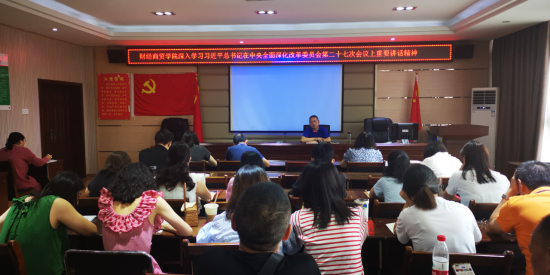 会上,苏自强组织全体教职工认真学习了习近平总书记主持召开的中央全面深化改革委员会第二十七次会议重要精神,并就教育部部长怀进鹏近期到广东等5省份围绕深化产教融合、推动职业教育高质量发展进行调研的情况向大家做了介绍。