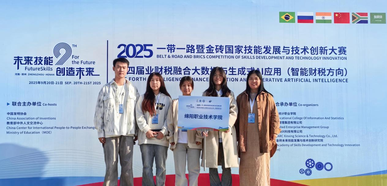 9月20日,2025一带一路暨金砖国家技能发展与技术创新大赛第四届业财税融合大数据与生成式AI应用(智能财税方向)全国总决赛在河南信息统计学院正式开赛。财经商贸学院学生李美娇、王勋鹏、郭馨岚、李丽君凭借扎实的专业功底、出色的临场发挥和卓越的团队协作,荣获国家级二等奖;学校获最佳组织奖;指导老师获优秀指导老师奖。