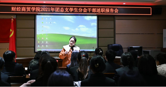 12月24日,财经商贸学院团总支第一届团学干部述职报告会在机电大楼四楼会议室召开,团总支书记尹诗、副书记税月、学生分会主席宋扬帆及全体团学干部、干事代表参加会议。