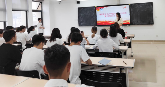 5月31日下午,由校团委主办,财经商贸学院和电子与信息学院共同承办的2022-2023学年第五期全校团学干部培训在第二教学楼4-02教室举行。学校党委宣传部宣传教育科科长刘晨晨以“新闻写作与新闻摄影基础”为题做了专题讲座。校团委、校学生会和二级学院团学干部等50余名同学参加培训。