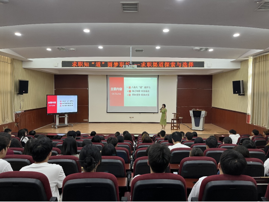 6月14日下午,财经商贸学院在智慧教室举行了学生就业能力提升讲座。讲座由“七彩生涯”辅导员工作室承办,邀请四川省就业创业专家库成员、旅游与管理学院副教授詹放作了题为“求职渠道探索与选择”专题讲座。学院150余名2021级学生代表及辅导员参加此次讲座。
