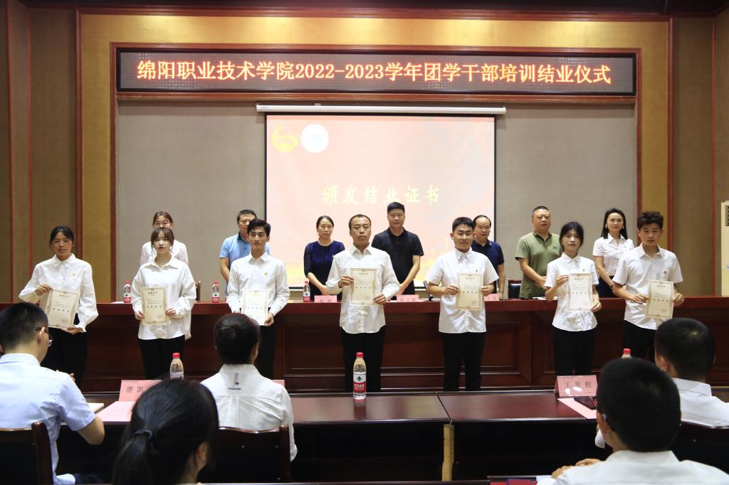 6月16日下午,2022-2023 学年学校团学干部培训结业仪式在行政楼第一会议室举行。学校党委委员、学工部部长韩文涛、各二级学院有关负责人、团总支书记以及校团委、学生会和二级学院主要学生干部参加会议,结业仪式由学校团委副书记谌丹阳主持。