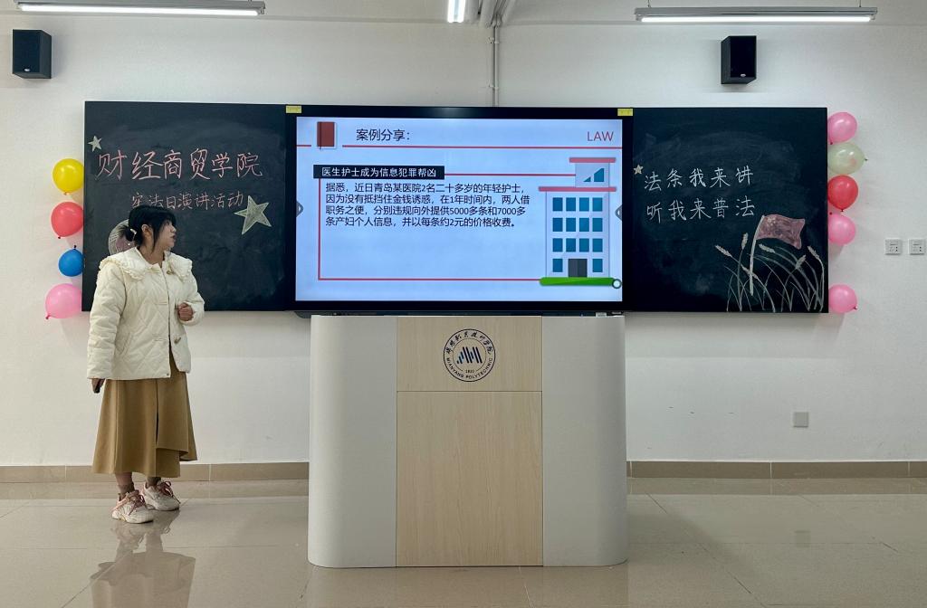 为全面贯彻党的二十大精神,进一步推进校园法治建设,增强学生法治意识,11月29日下午,学院在第二教学楼603教室举办“法条我来讲、听我来普法”主题演讲比赛。共有18名同学参加此次演讲比赛,学院团总支书记、学生干事、专任课教师担任评委出席活动。