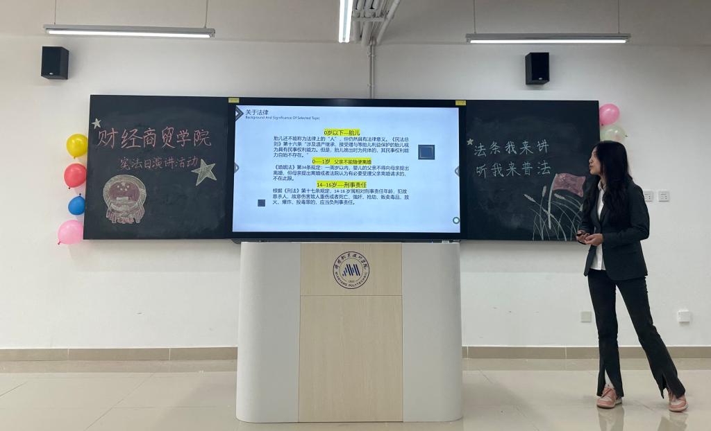 本次比赛选手自行从《中华人民共和国宪法》、《中华人民共和国刑法》、《中华人民共和国民法典》、《中华人民共和国教育法》等文献中选择1-2条法律条款并结合案例分享的方式,配以PPT或视频演讲的形式呈现。选手们开门见山,直点主题,开场方式丰富多样,结合时代背景普及法条并结合生活实际阐述观点。本次演讲内容涉及广泛,包含校园欺凌、电信诈骗、生活维权、校园贷以及人工智能应用等多个方面。最后,评委根据演讲选手的语言表达、逻辑思路、总体表现等方面进行评分,最终评选出一等奖3名、二等奖4名、三等奖5名,优秀奖2名。
