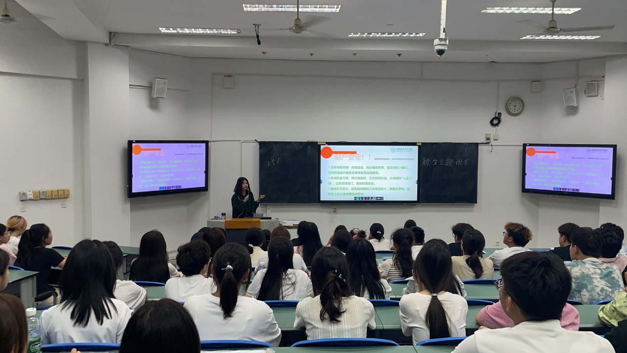 9月7日晚,各班级辅导员组织召开新生主题班会。四位新生辅导员着重强调班级纪律、安全的重要性,引导新生树立规则意识、安全意识,为优良班风建设奠定基础。在资助政策宣讲环节,辅导员详细解读国家及学校的奖助学金、助学贷款等政策,确保家庭经济困难学生充分了解资助渠道,安心求学。此外,辅导员还围绕入学适应、学业规划、职业发展等方面与新生交流,分享大学学习方法与成长经验,鼓励新生积极参与学科竞赛、社团活动,全面提升自身综合素质,为未来发展蓄力。