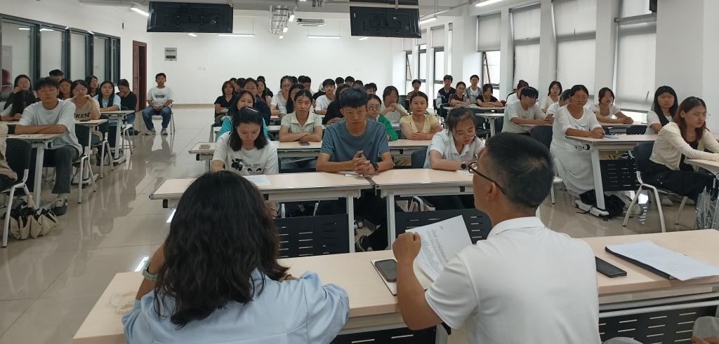 2025年9月11日中午,绵阳职业技术学院财经商贸学院在第二教学楼602教室,召开学院2025年秋季学期团学干部见面会暨换届动员会,明确团学工作方向,凝聚学生骨干力量,为新学期团学工作注入新动能。学院副院长林科主持会议,全院团学干部、预备干部及社团负责人和新生临时班委代表等80余人参会。