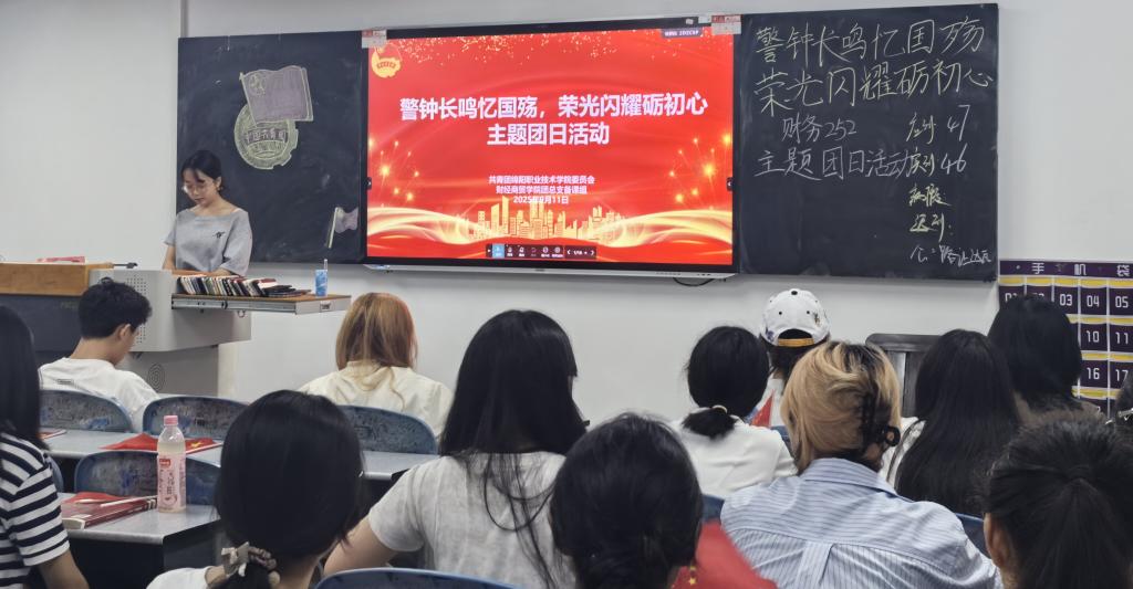历史教育环节,通过播放纪录片片段、讲述革命故事,带领学生回溯“九一八”事变以来的民族抗争史,涵盖东北抗日联军冰雪苦战、平型关大捷、南京大屠杀、开国大典等重要历史节点。丰富的历史影像与英雄事迹引发学生强烈共鸣,2025级统计与会计核算专业学生表示,通过影像与故事深刻认识到和平的来之不易。辅导员徐密强调,铭记历史旨在让学生明晰“落后就要挨打”的道理,自觉扛起“强国有我”的时代担当。