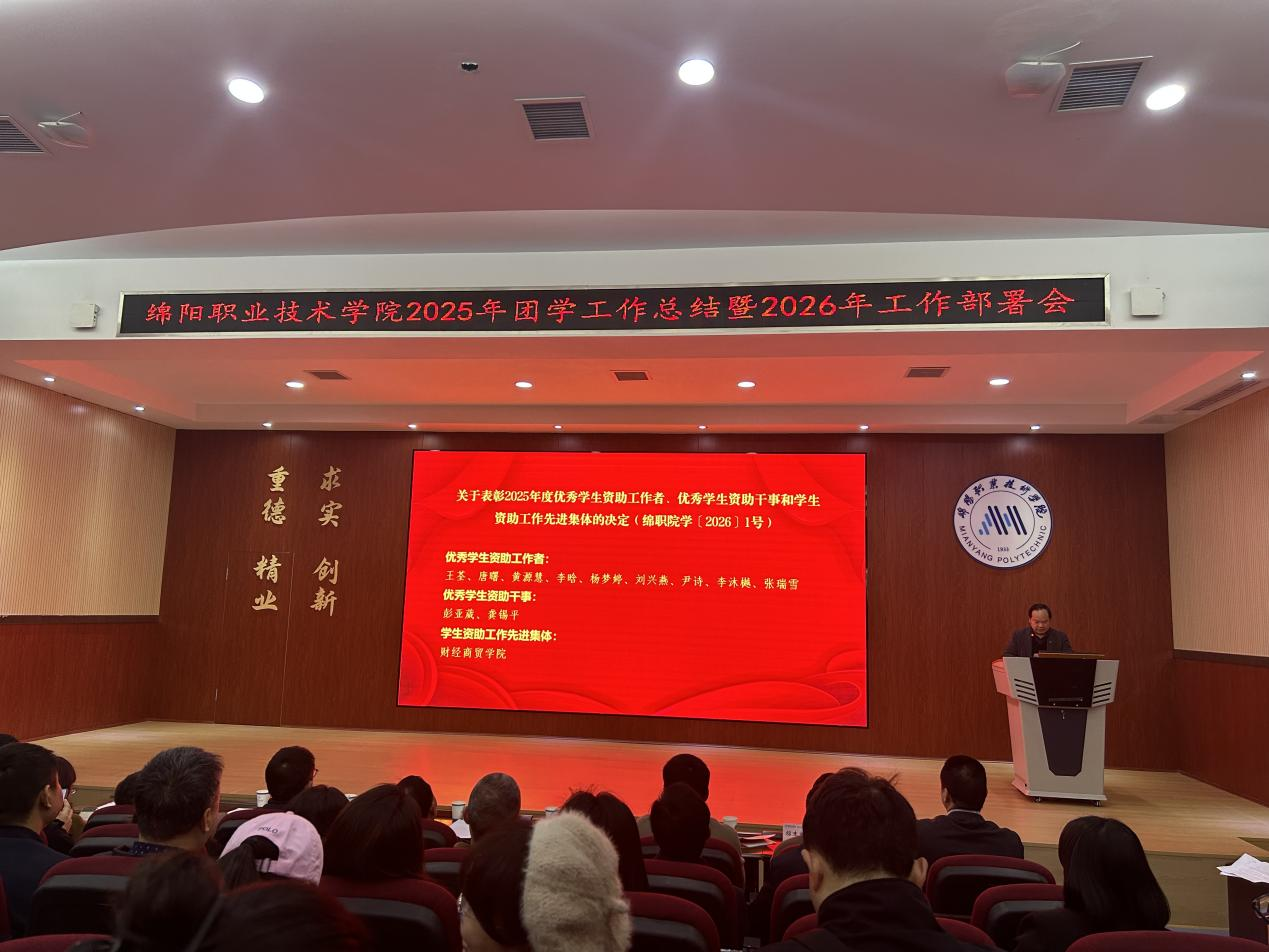 近日,绵阳职业技术学院发布2025年度学生资助工作表彰决定,财经商贸学院凭借规范高效的资助管理、精准暖心的帮扶服务、成效显著的资助育人实践,获评“学生资助工作先进集体”;学院学生资助干事尹诗同志凭借严谨负责的工作作风、务实创新的工作方法,荣获“优秀资助工作者”称号,这份荣誉是学校对学院2025年度学生资助工作的高度肯定与认可。