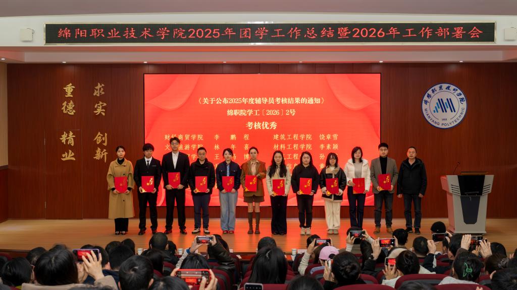 3月20日上午,绵阳职业技术学院2025年团学工作总结暨2026年工作部署会在智慧教室隆重举行。本次大会由财经商贸学院牵头承办,学校党委常委、副校长张明出席会议并讲话,各职能部门负责人、二级学院学生工作负责人、全体辅导员及学生代表参加会议。我院以高标准筹备、高质量服务圆满完成承办任务,同时作为先进代表分享育人经验,多项成果与荣誉在大会上集中亮相。